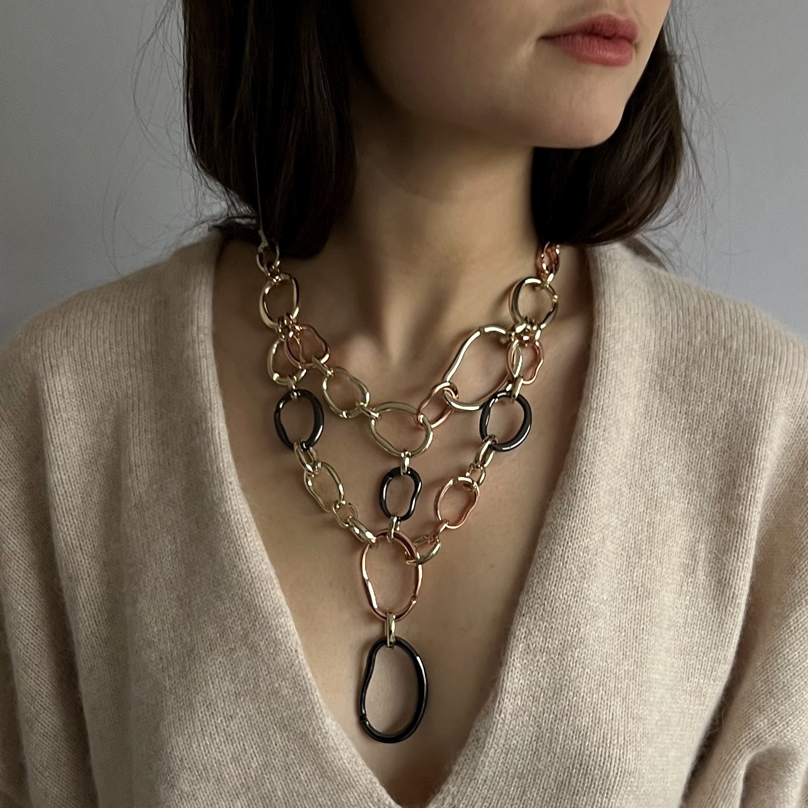Edition limitée n°5 plaquée à l’or fin 24 carats, composée de 6 tailles différentes de maillons (dont 4 en gun lacquer)